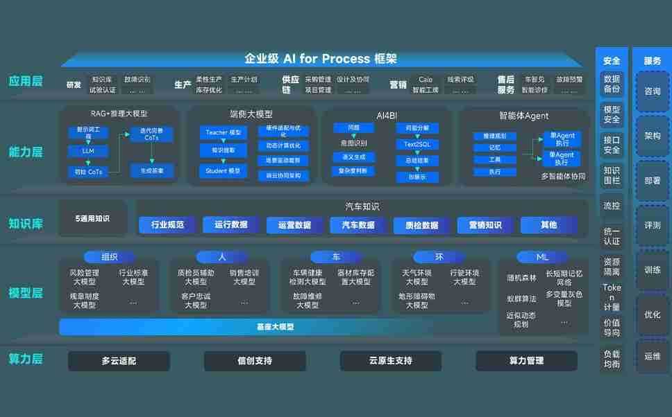 端到端的一站式AI工作空间深度融合了从企业战略规划到日常经营的全流程业务板块,,,,定向解决车企内部领域多、、部门多、、链条长、、场景碎片化等难题,,支持车企快速构建以AI为核心的生产力写作体系,,,,实现任务执行与AI能力的无缝集成与交互