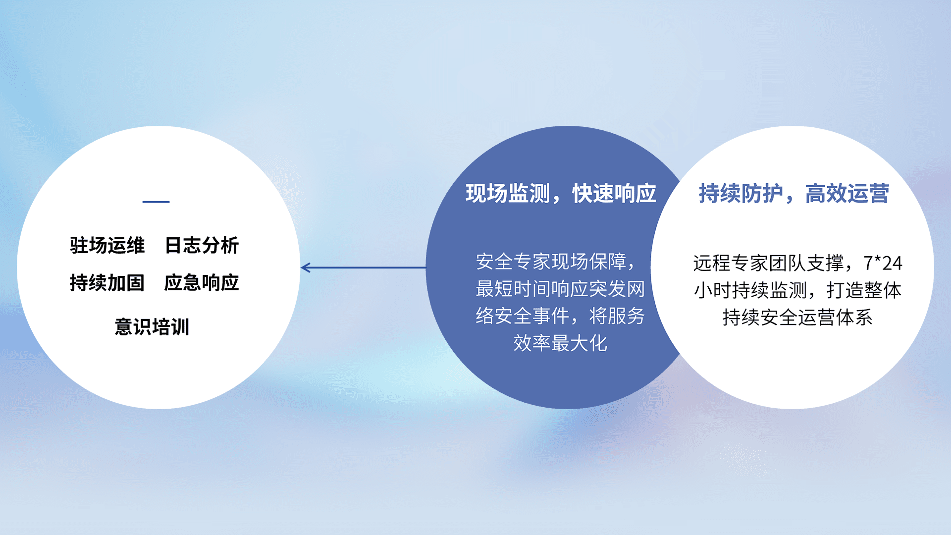 针对客户行业特性,,,,以专业的安全服务+多厂商联合解决方案提供专属的一站式安全管理服务,,,帮助客户全面感知网络空间威胁,,,基于识别、、、、检测、、、分析、、、、防护、、、监测、、、响应的服务理论模型,,从方案咨询、、集成交付、、评估验证、、、、优化加固、、、运维运营,,致力于为客户提供完整的闭环管理式安全服务。。以实战经验为客户打造高抵御风险的安全体系,,帮助客户发现威胁、、对抗威胁、、、处置威胁,,,,不断积累安全对抗能力,,,,持续保障数字化安全。。。。